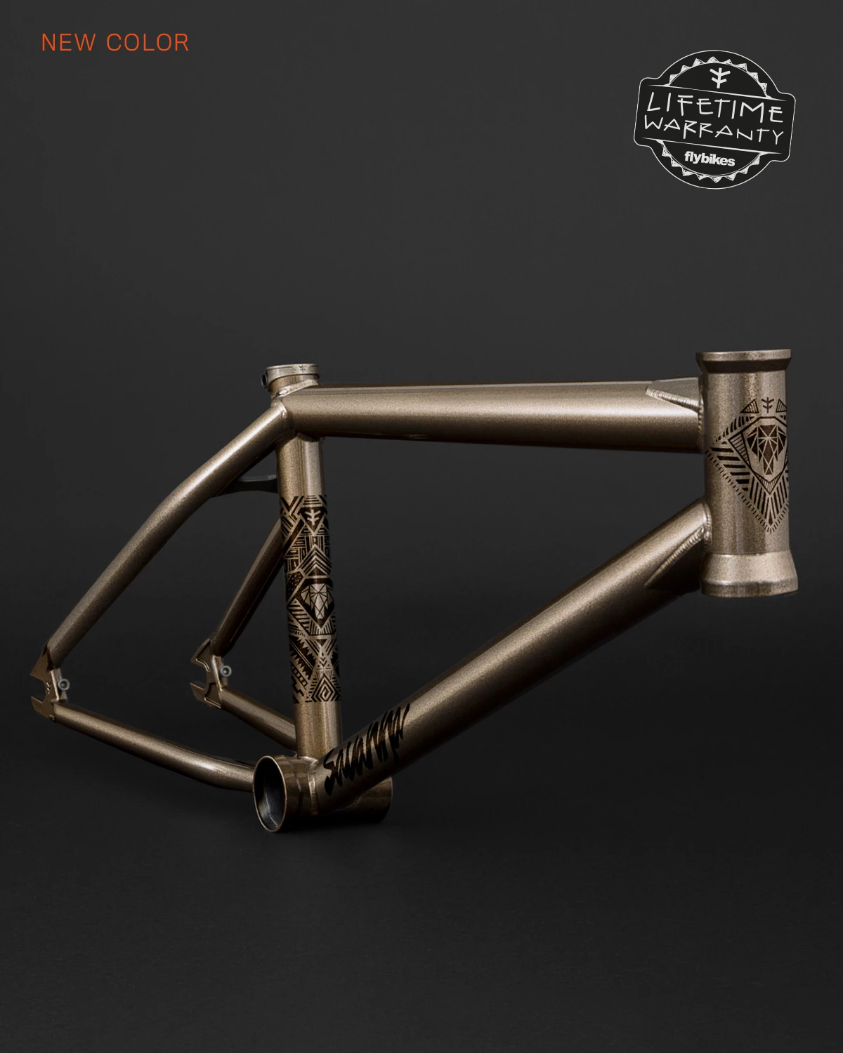 Le cadre comprend des goussets internes et externes, des tubes coniques et Ă Ă©paisseurs multiples, un collier de tige de selle Investment Cast avec le systĂšme de coupe horizontale et des pattes Investment Cast avec tendeurs de chaĂźne intĂ©grĂ©s. Il est sans frein, il n’y a donc ni supports ni guides.