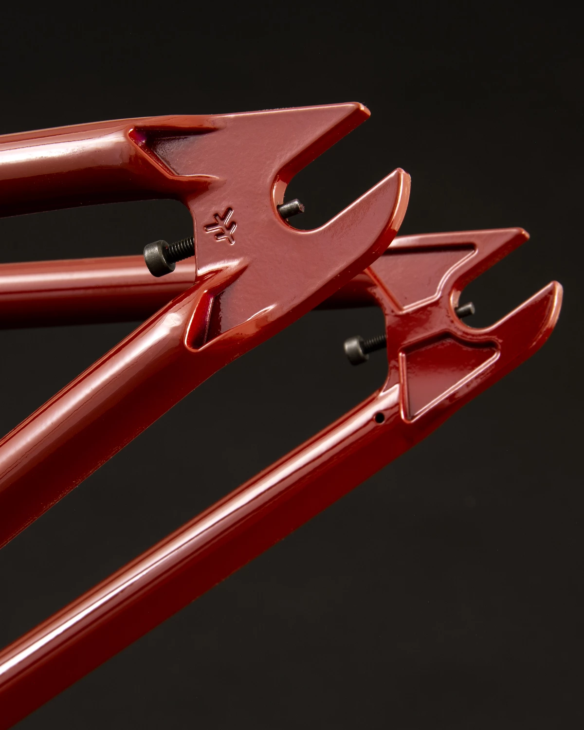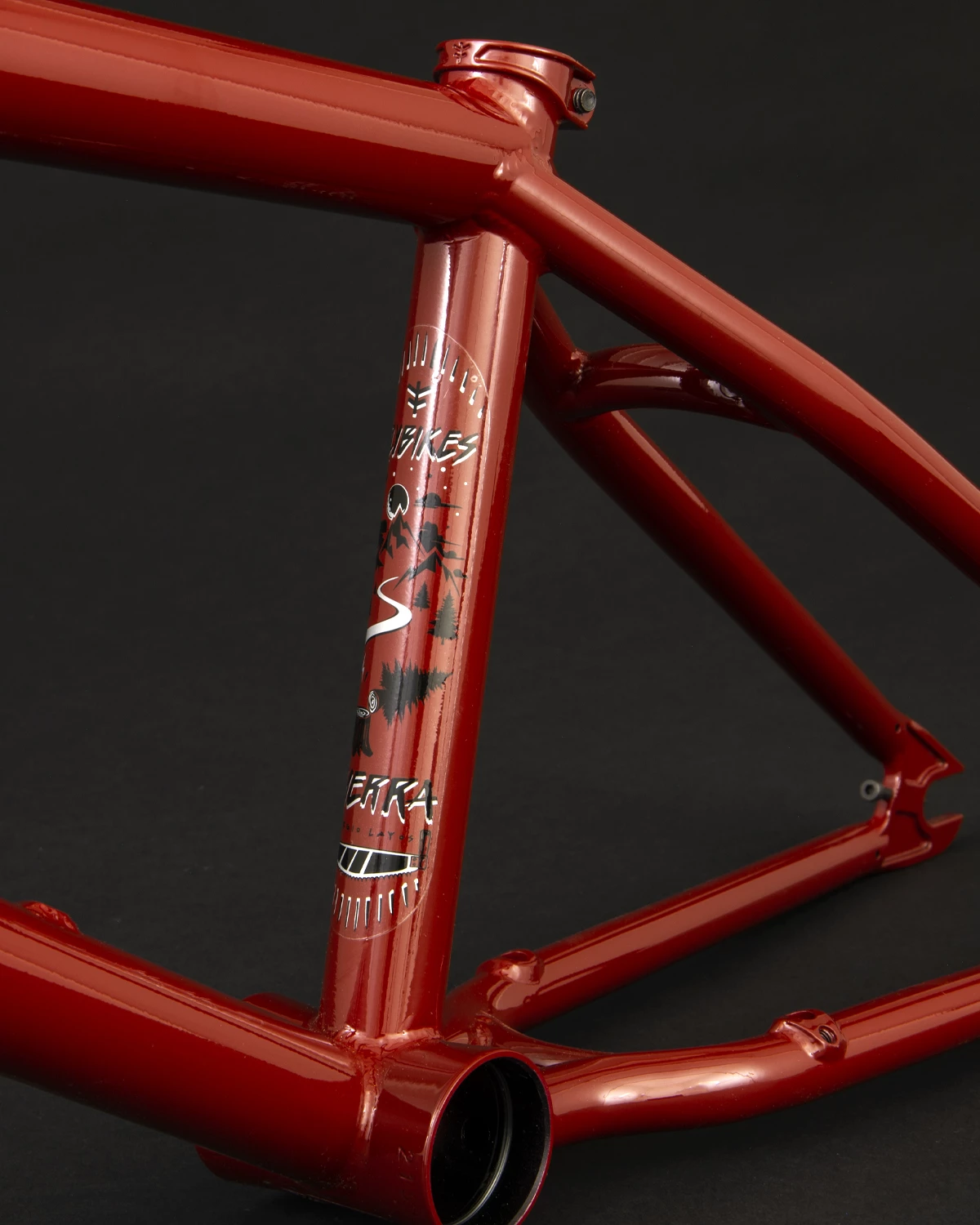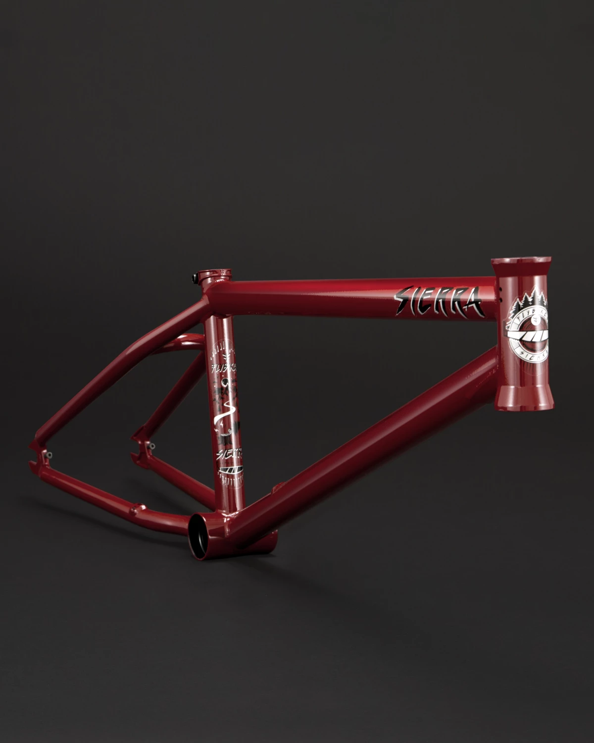 Le cadre Sierra signature de Sergio Layos comprend des goussets internes et externes, des tubes coniques et à épaisseurs multiples, une pince de tige de selle Investment Cast avec le système de coupe horizontale, des supports de frein amovibles de style EBS et des pattes Investment Cast avec tendeurs de chaîne intégrés !