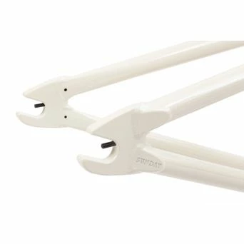Des tendeurs de chaines intĂ©grĂ©s et un emplacement pour le Gyro sur la colonne de direction pour y mettre un frein rotor. Ce cadre obtient tous les avantages et les critères nĂ©cessaire pour un vĂ©lo de Skatepark. Les tasseaux de freins sont complètement amovibles, pour garder un vĂ©lo clean sous n’importe quelle configuration.