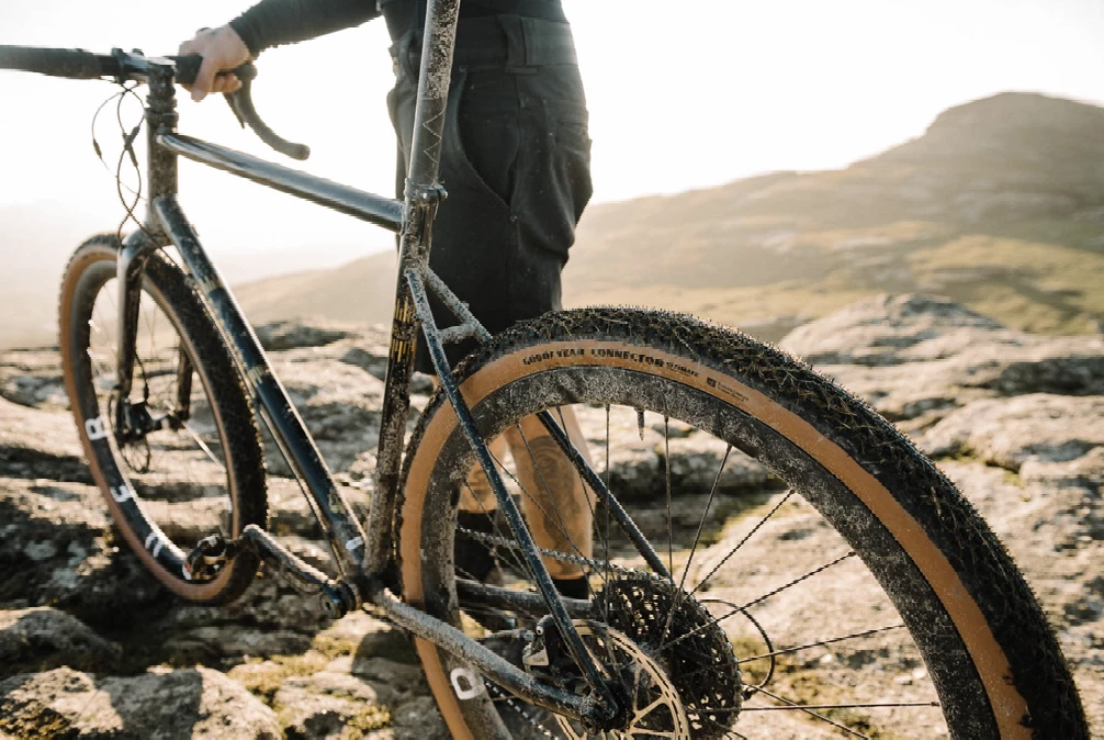 Pour les aventuriers en gravel ou ceux qui se tirent la bourre dans la boue avec un cintre de route. Pneus tout-terrain à gros volume, petits pavés, gros rendement.