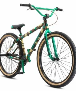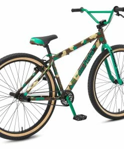 - Modèle 2022. Couleur CAMO GREEN, Roues de 29″, roulements étanches sur la roue arrière, jeu de direction intégré, cadre alu et équipement au top, frein arrière V-brake, pneus Se Bikes en taille 29 X 2,40. Toujours au top le Big Flyer.
