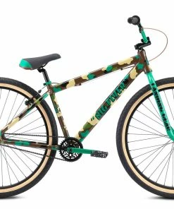 - Modèle 2022. Couleur CAMO GREEN, Roues de 29″, roulements étanches sur la roue arrière, jeu de direction intégré, cadre alu et équipement au top, frein arrière V-brake, pneus Se Bikes en taille 29 X 2,40. Toujours au top le Big Flyer.