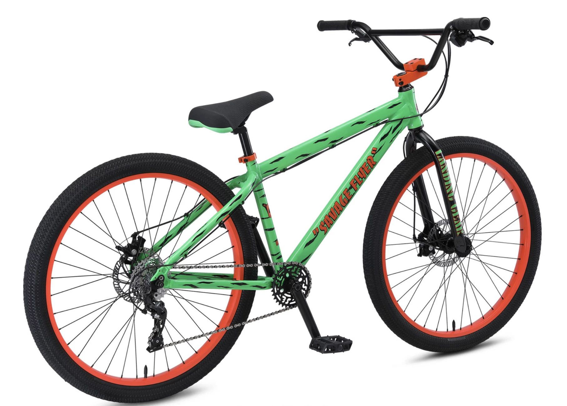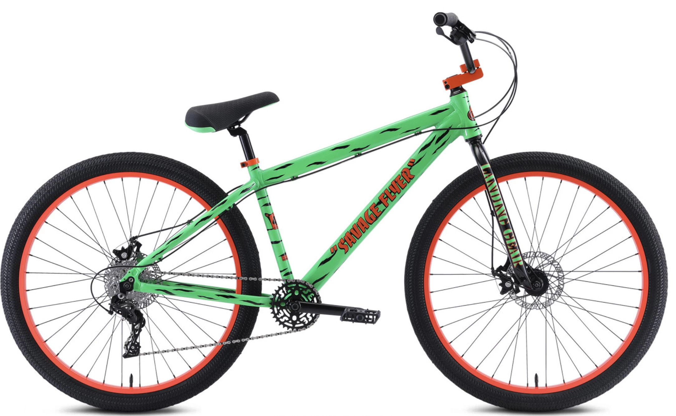 âCe vĂ©lo est tout simplement sauvage !  Le tout nouveau Savage Flyer de 27,5 pouces est un mĂ©lange fĂ©roce de tout ce que vous pouvez demander Ă un vĂ©lo de bikelife. Il est construit avec un cadre robuste en aluminium 6061 et Ă©quipĂ© d’un dĂ©railleur de 10 vitesses et de freins Ă disque. Les pneus Kenda Kiniption de 27,5″ x 2,3″ sont dotĂ©s d’un motif complet de bande de roulement en diamant pour une adhĂ©rence ultime sur le bitume.