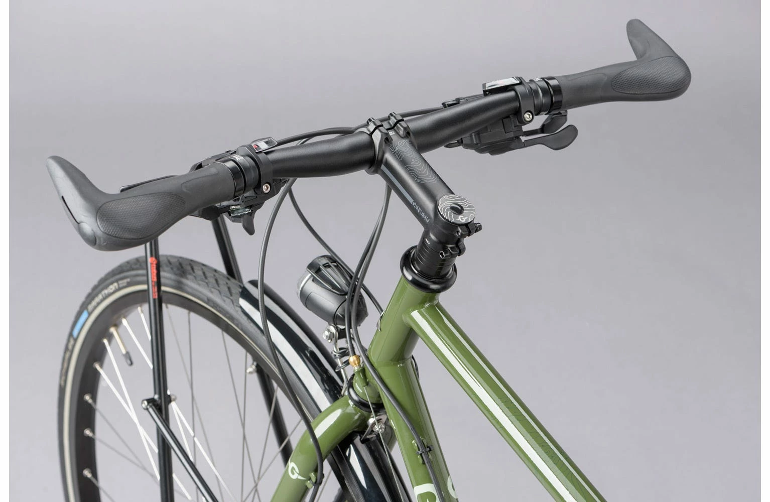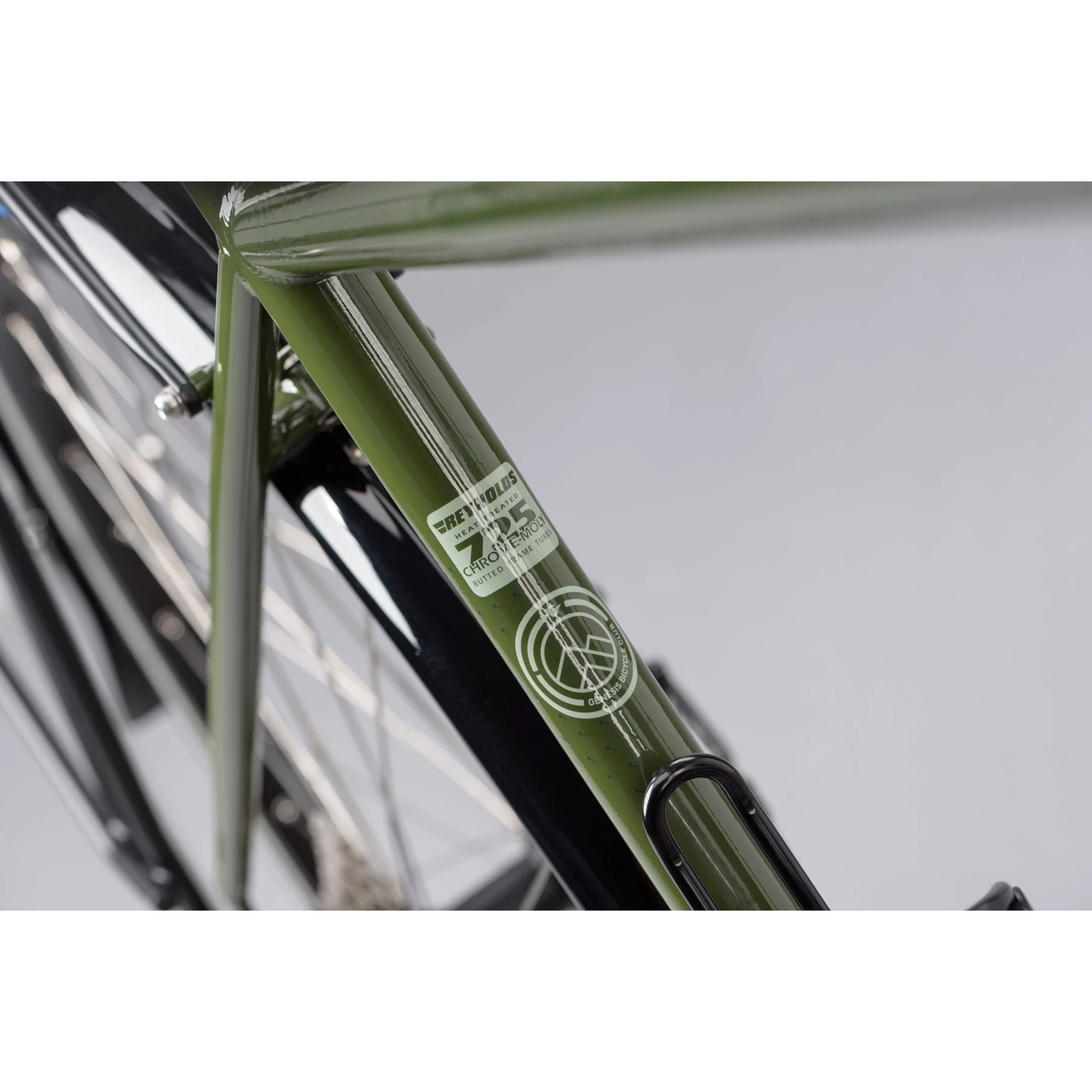 Le Tour de Fer 20 est prĂŞt pour les aventures du monde ouvert. Un cadre durable Reynolds 725 et des composants simples font du Tour de Fer 20 le rĂŞve d’un cyclo-touriste. Le dernier groupe Deore de Shimano offre une autonomie considĂ©rable avec son triple pĂ©dalier adaptĂ© aux tournĂ©es, tandis que les freins Ă disque Ă câble Promax assurent un arrĂŞt fiable dans toutes les conditions, mĂŞme lors du transport de charges lourdes. HabillĂ© d’un porte-bagages arrière Tubus Cargo, de garde-boue chromoplastiques extra-longs sur mesure et d’un moyeu dynamo SP avec feux avant et arrière B&M et une barre plate, vous ĂŞtes prĂŞt pour votre prochaine aventure.