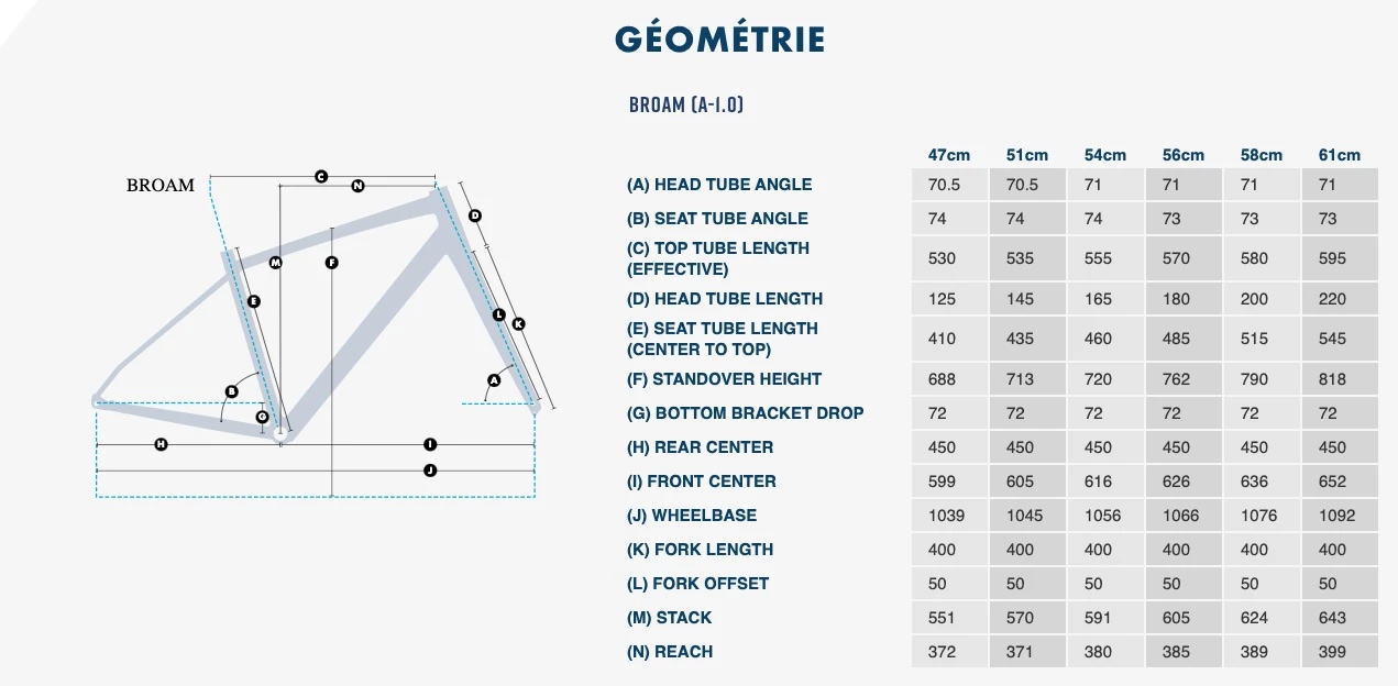 Plein de fixations en sĂ©rie, pas mal de dĂ©gagement en pneus (45C), possibilitĂ© de l’Ă©quiper en 650. Bref un bon plan! Large plage de taille de 47 Ă 61!