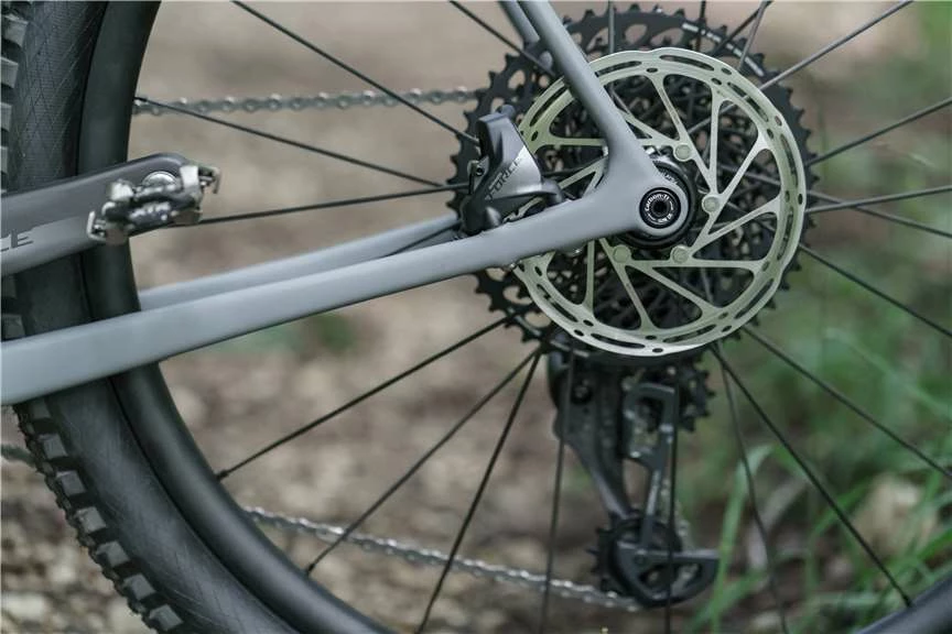 Sram AXS avec la cassette 10-50, cintre/tige Easton carbone, roue DT GR-1600 Spline 27.5″ et pneu faaatttt (on peut vous mettre moins gros si vous voulez ;-))